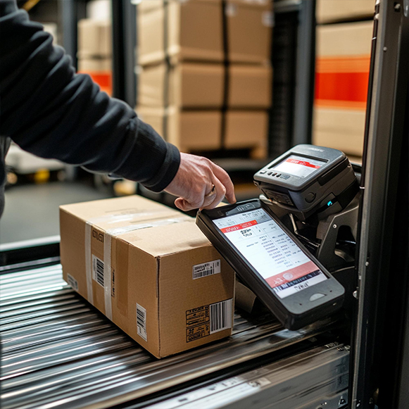 Scans each product at dispatch using fixed or handheld readers; automatically validates SKU, batch, serial number, and quantity against system data.